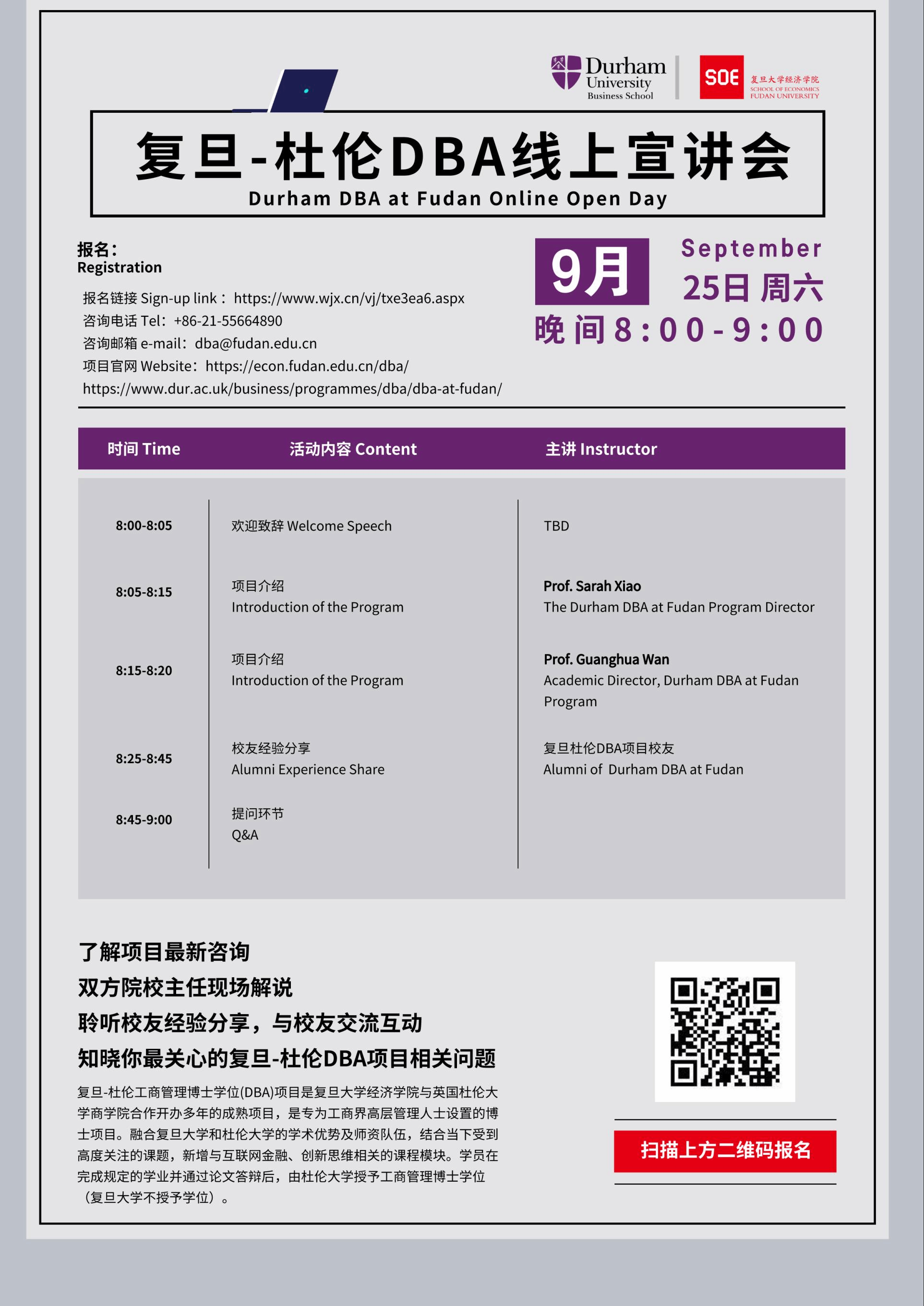 2021年9月25 复旦-杜伦DBA项目线上宣讲会