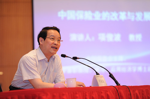 In his speech Mr. Xiang introduced the birth and development of insurance. He pointed out that as a built-in mechanism of a market economy, the insurance industry serves as one key gauge of the maturity of the economy and the important driving force of economic growth. Then he elaborated the current status of the reforms in the industry. China, a new big player in insurance, ranks the 3rd in terms of the size of the insurance market, after the US and Japan. China is also one of the four key members of IAIS. Impressive progress has been made in the industry regarding market-based policies, payments system, regulatory system, and infrastructure. Of course the industry is still at the initial stage of growth with quite a few problems, mainly reflected in the inadequacy of the insurance markets, services, and the industry’s ability to prevent risk. In the Q&A session, to the question about the riskiness of repeated liberalization of the investment of insurance funds, Mr. Xiang said statistically since more investment options became available the return on insurance funds has increased year by year and insurance companies evaluate potential investments comprehensively based on the criteria of long-term sustainable development, efficiency and safety. Moreover insurance companies are doing well regarding the regulatory commission’s rule that equity assets should not exceed 30% of an insurance company’s invested funds. The audience also asked questions concerning the mobility of marketing personnel in insurance and college education in insurance.