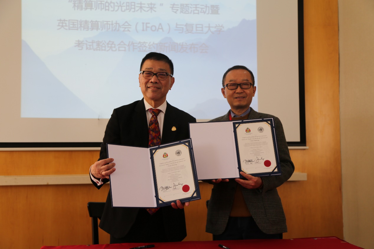 风险管理与保险学系在系统性精算教学方面迈出的巨大一步。陈诸杰主席表示:英国精算师协会是全球历史最为悠久,且唯一获得皇家宪章认可的精算职业组织;英国精算师协会的精算职业资质认证,也是精算教育领域的黄金标准。IFoA将继续致力于和包括复旦在内的全球一流高校合作,共同培养未来精算师,推广精算科学。