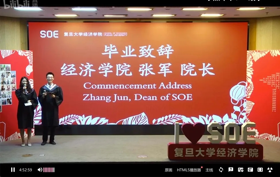 2020届云端毕业典礼暨毕业晚会在纪念片《聚散星火》中缓缓落幕,同学们回顾了在复旦经院的青春岁月,分享了自己在学术科研、社会实践、文体活动和创新创业等方面的成长和感悟,经院党政领导和各系所的教师代表也送出了寄语,肯定了同学们求学复旦经院的可喜进步,更期待着同学们可以在未来的广阔天地中有所作为,始终不忘责任与担当。