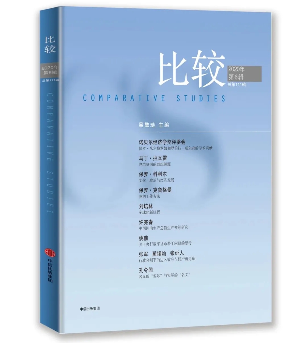 《比较》——以比较传递理念、思想和智识。吴敬琏主编,中信出版社出版,2002年7月创刊,是当今中国权威的经济学连续出版物。刊物秉承“以比较传递理念、思想和智识”的宗旨,广采世界一流经济学家的最新理论和思想,有针对性地介绍国内外学术理论界对中国经济改革的方案设计、政策建议和评论。