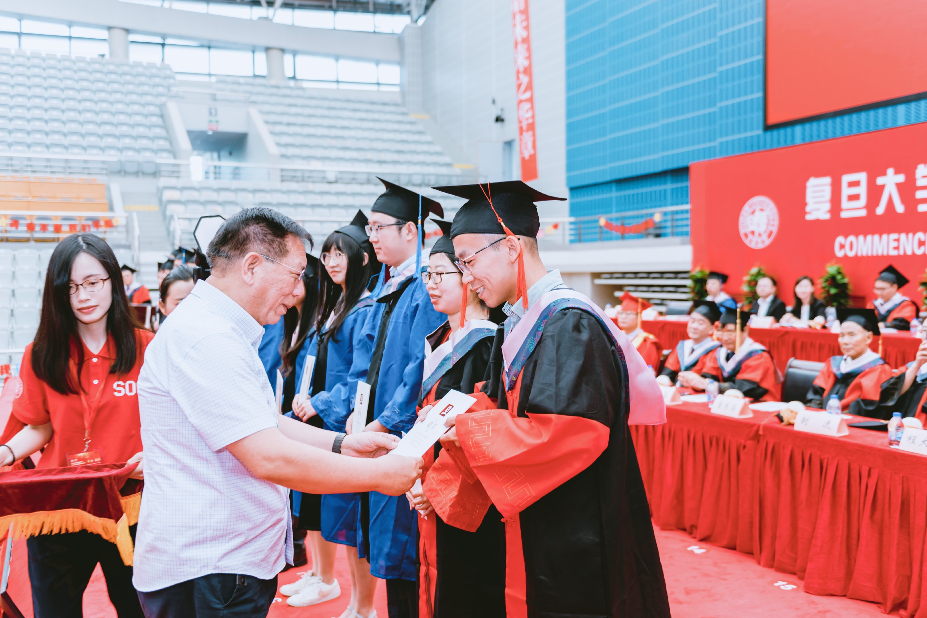 接着,隆重的学位授予仪式正式开始。就座在主席台的教师们为毕业生授予学位,并颁发毕业纪念册。毕业生学位帽上的流苏从右侧拨到了左侧,标志着同学们顺利完成了学业,即将走出校门,奔向锦绣前程,去追求新的理想。未来,毕业生将以校友的身份延续复旦经院人的梦想,开启新的奋斗征程,每一位校友都将成为复旦经院一张闪亮的名片。
