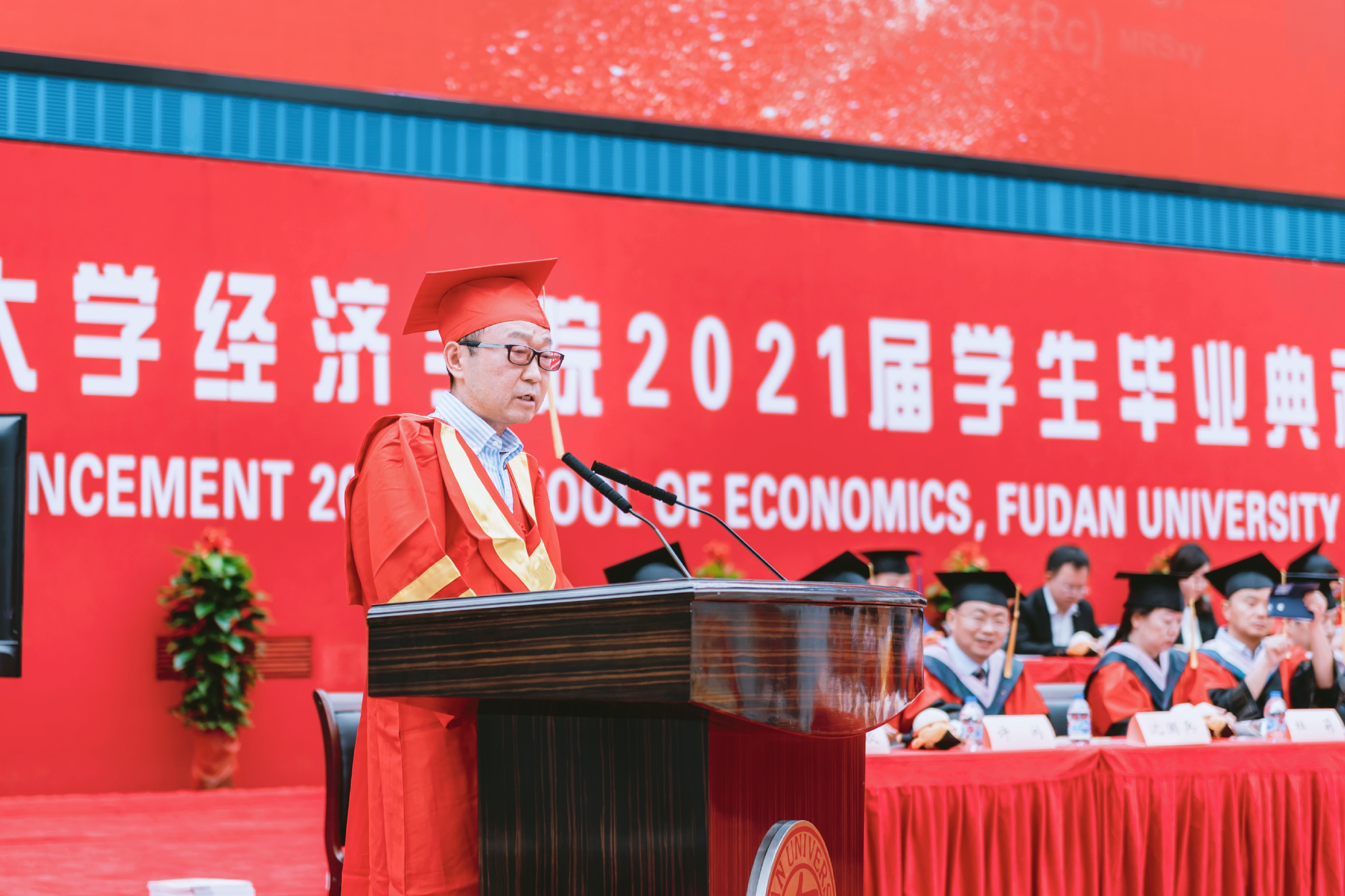 教师表示敬意,向一直以来支持复旦经院的各位来宾和校友表示感谢,向毕业生表示祝贺,随后与毕业生们分享了自己的经历。从如何与复旦结缘,到在大师云集、同学中藏龙卧虎的复旦经院求学,从本科毕业留校任教,到在国外留学任教并最终回国任教的经历,每一段都给毕业生们留下了深刻的印象。金李教授表示,“想到复旦就是想到温暖、敬重。复旦是我人生启蒙中最初的老师,复旦老师教会我怎么做学问,怎么做人”。他结合帮助中国民营企业的案例,向同学们介绍了自己所做的是“为中国未来的经济发展添加新的光和热”的工作,鼓励同学们勇敢面对挑战。最后,金李教授援引了张军院长的寄语,并以一句话结束演讲,“就像我和我这一代人一样,随着岁月的流逝,你们将来也会对复旦充满感恩,也会明白复旦的求学岁月对你们而言为什么弥足珍贵”。