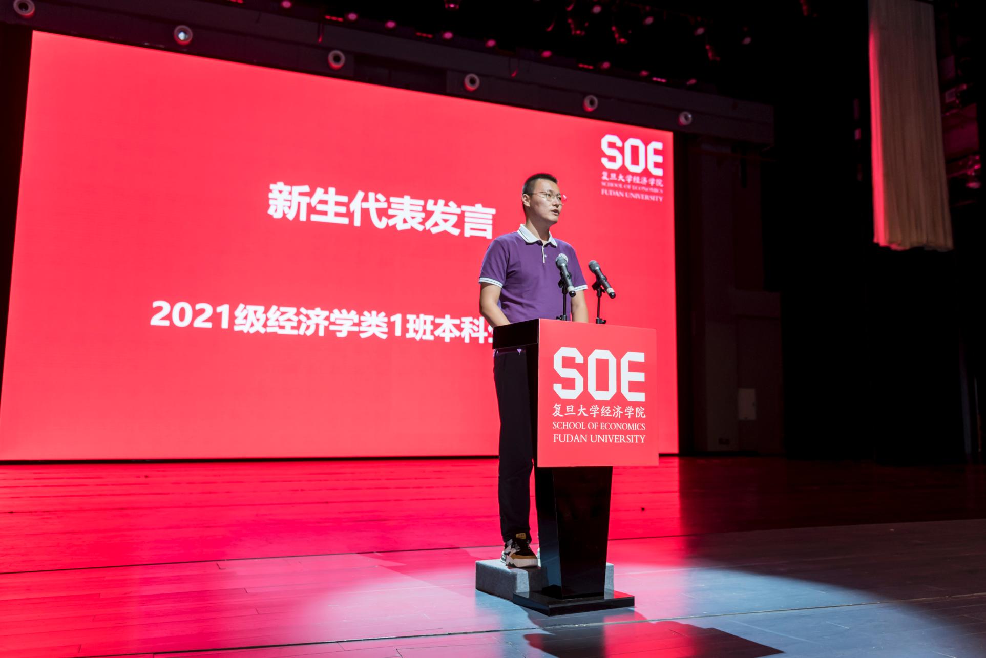 的新生们也表达了自己的所思所想。2021级经济学类1班杨珩同学作为本科新生代表,分享了他对于“普通”和“非凡”的思考,在经院的学习生活让他拥有了遇强则强,迎难而上,追求自我价值和人生理想的底气。