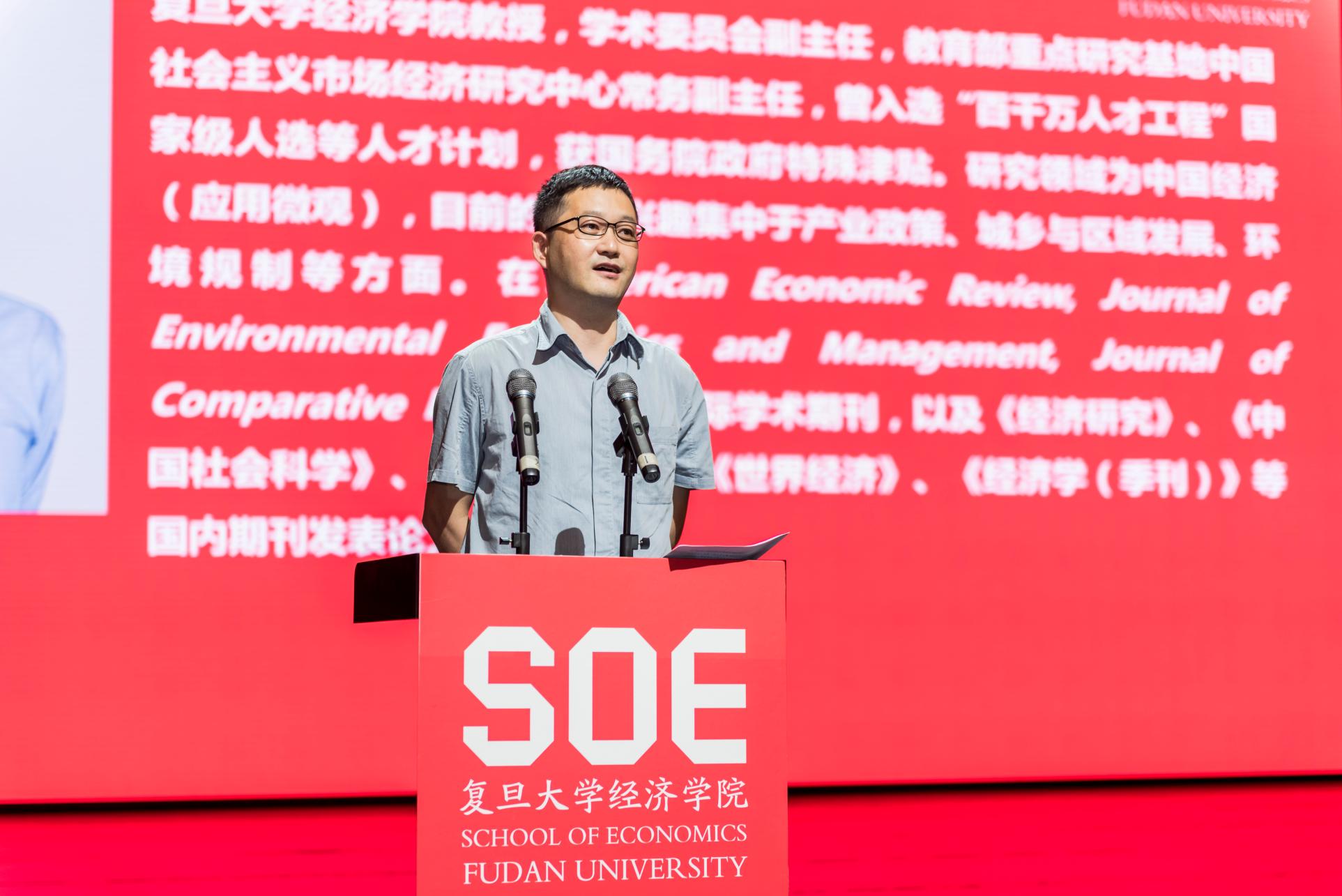 中国社会主义市场经济研究中心陈钊老师作为教师代表发言。陈钊老师希望同学们能够保持包容之心和思辨之智,用科学的精神来对待经济学这门面向真实世界的学问,用建设性的研究助力人民美好生活。
