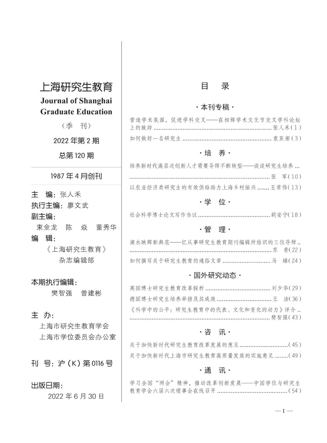《上海研究生教育》2022年第2期刊发了张军教授的文章《培养新时代高层次创新人才需要导师不断转型——谈谈研究生培养》,张军教授在该文中分享了自己从教30多年来培养学生的经验和感悟。在此,我们转载全文,以飨读者。