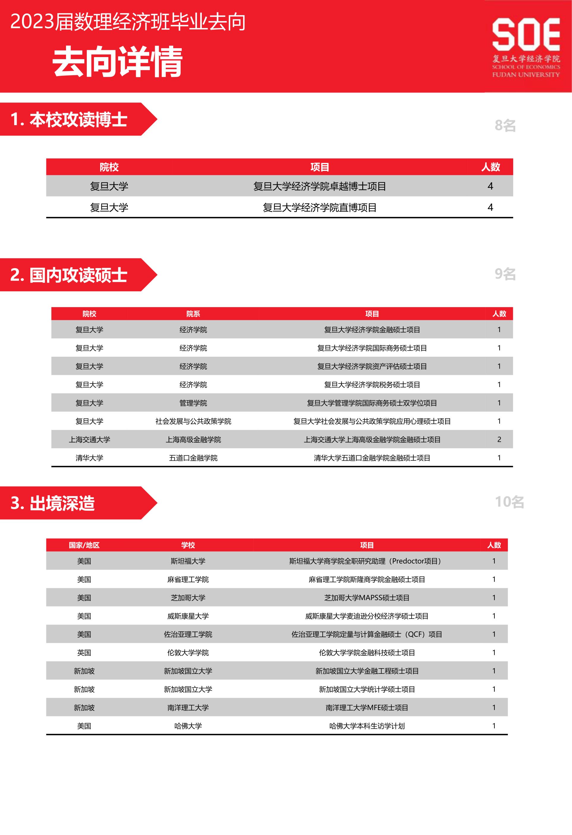 1.殷忠禹,2023届数理经济班本科生,将赴斯坦福大学担任全职研究助理(Predoctor项目)。