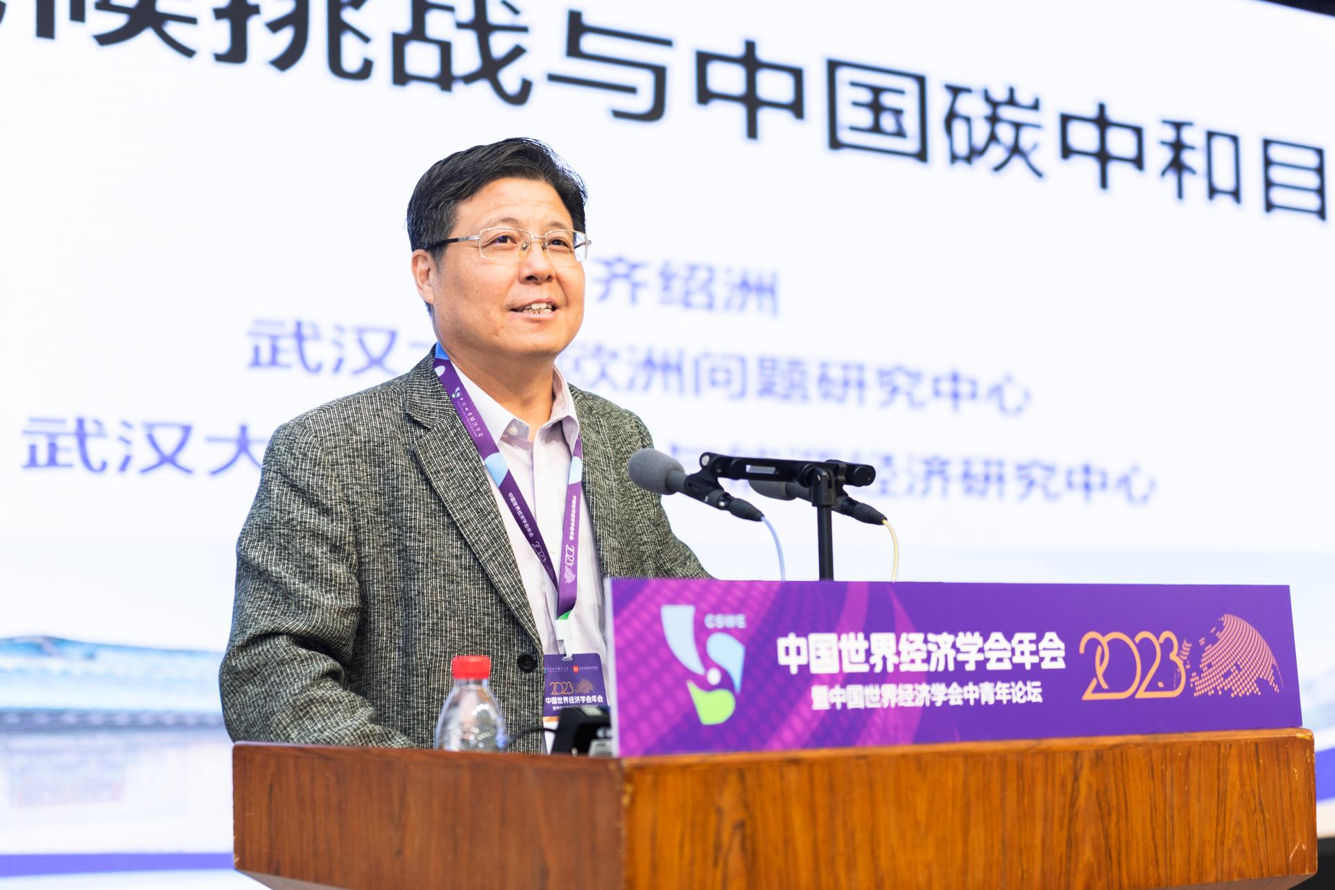 院长、中国世界经济学会副会长丁一兵教授,演讲主题为“中国OFDI是否确实导致东道国碳排放脱钩”。他通过构建模型测度东道国碳脱钩的情况,指出中国OFDI促进了东道国的绿色低碳发展。