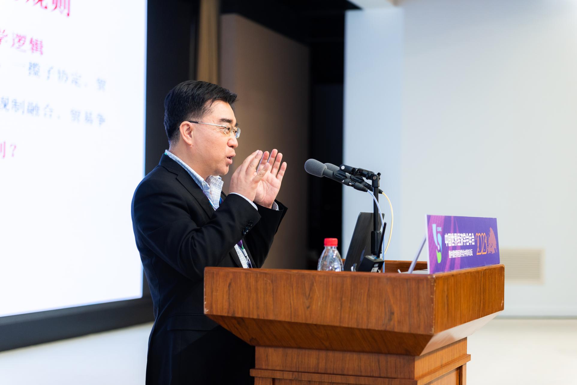 第二位嘉宾是上海社会科学院党委书记、中国世界经济学会副会长权衡研究员,演讲主题为“国际经贸规则的底层逻辑与我国制度型开放的新方向”。他的报告聚焦三个议题:一是,百年未有之大变局与我国开放战略新形势;二是,国际经贸规则发展的底层逻辑与高水平开放的新方向;三是,顺应经贸规则的底层逻辑,加快高水平对外开放。