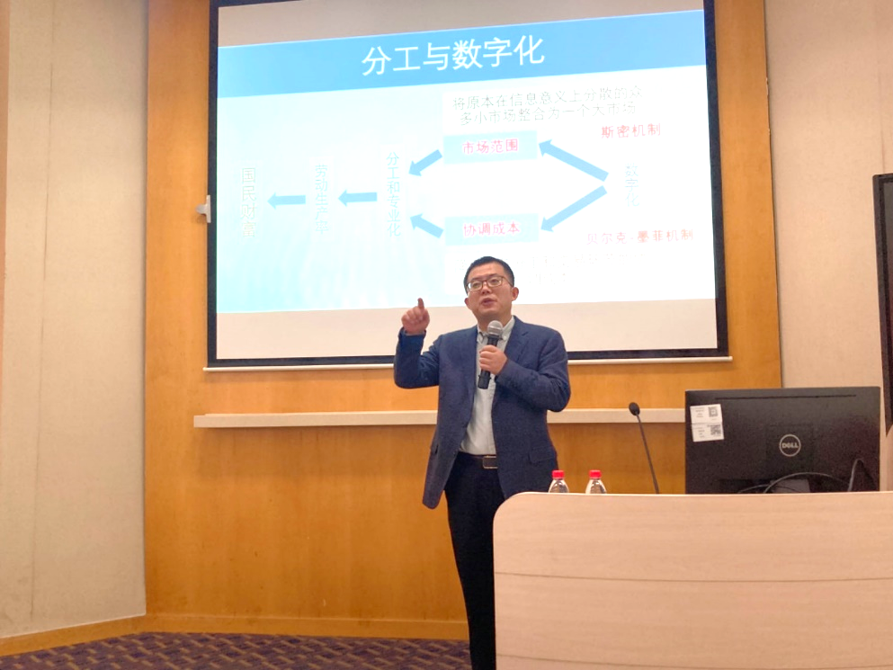 寇宗来教授为全校学生做了题为“数字化的经济社会影响”的科普讲座。寇教授把深刻的经济学规律用日常语言娓娓道来,向学生们展示了数字化对组织、企业、个人的影响,引发同学们深入思考如何迎接数字化时代这个重要问题。同学们纷纷表示,本场科普讲座让自己对数字时代产生浓厚兴趣,进一步激发学习动力。