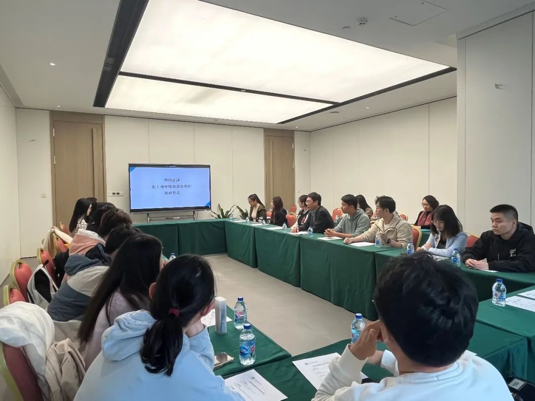 专业课程“能源与气候变化经济学”的20多位师生前往位于上海虹口的上海环境能源交易所参观学习。上海环境能源交易所(以下简称上海环交所)研发部周沁怡老师向师生们介绍了上海环交所的发展历程和区域及全国碳市场的主要成就,从国内碳市场的交易现状到全球碳交易动态、创新方向及面临的挑战,引发同学们对碳交易市场的深入思考。
