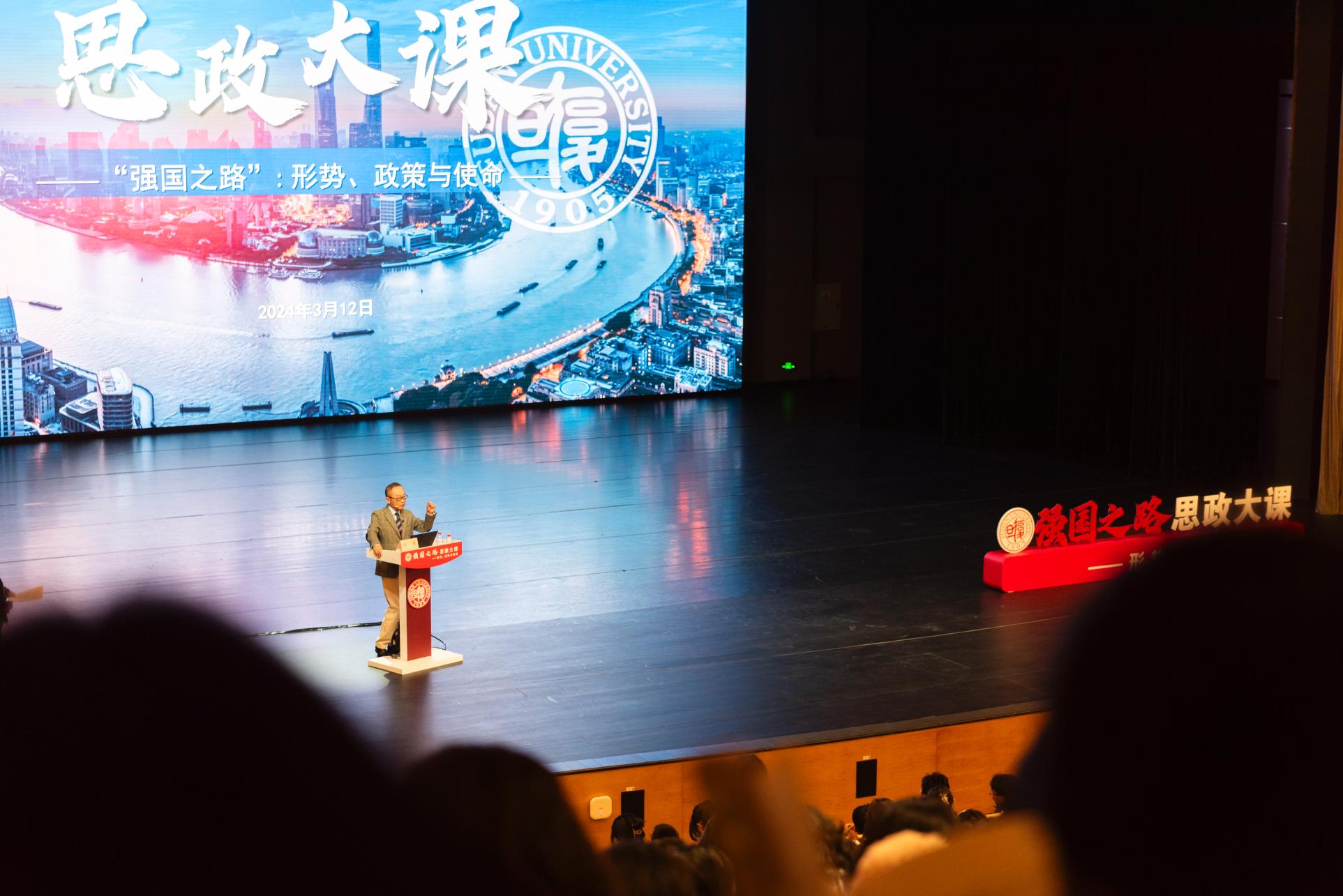 相辉堂北楼楼上楼下坐满了学生,二楼的同学也纷纷举手提问。老复旦人、经济   学家张军用两节课的时间,深入浅出讲述中国经济与形势,带来别样的思政大课,鼓励青年学子在时代的洪流中进行自主知识体系研究,传承、讲好中国故事。“请卓越的人讲有趣的事”,讲清楚中国式现代化的成功案例及其蕴含的道理哲理学理,让年轻一代复旦人掌握运用科学的世界观和方法论去认识观察世界、分析解决问题,熔铸报国强国的魂魄,正是“强国之路”思政专题大课的初衷。