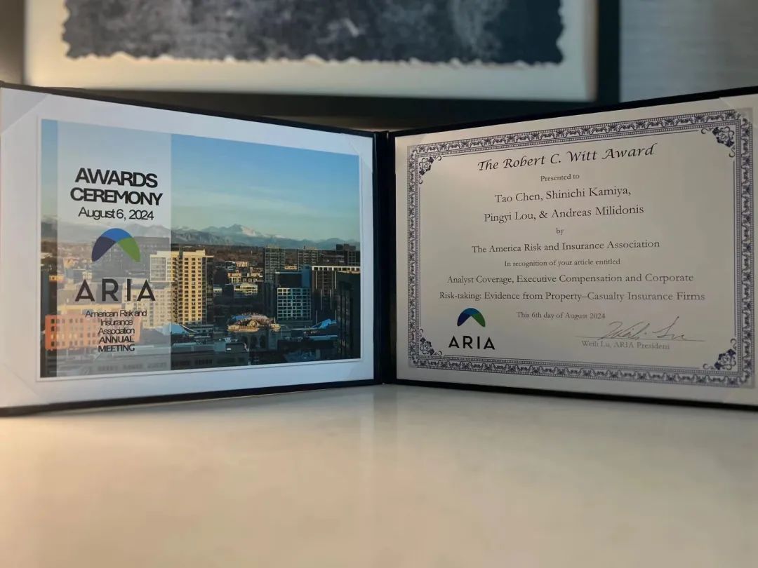 Robert C. Witt Award是全球风险管理与保险领域最重要的学术奖项之一,由美国风保协会于2000年创立。依据论文的原创性、实用性和贡献度,协会从过去一年中发表在其旗舰期刊——保险与风险管理领域顶刊Journal of Risk and Insurance的所有刊发论文中评选出最优秀的1篇论文。该奖项的评选需经过多轮匿名评审与综合评估,最终由协会理事会确定。