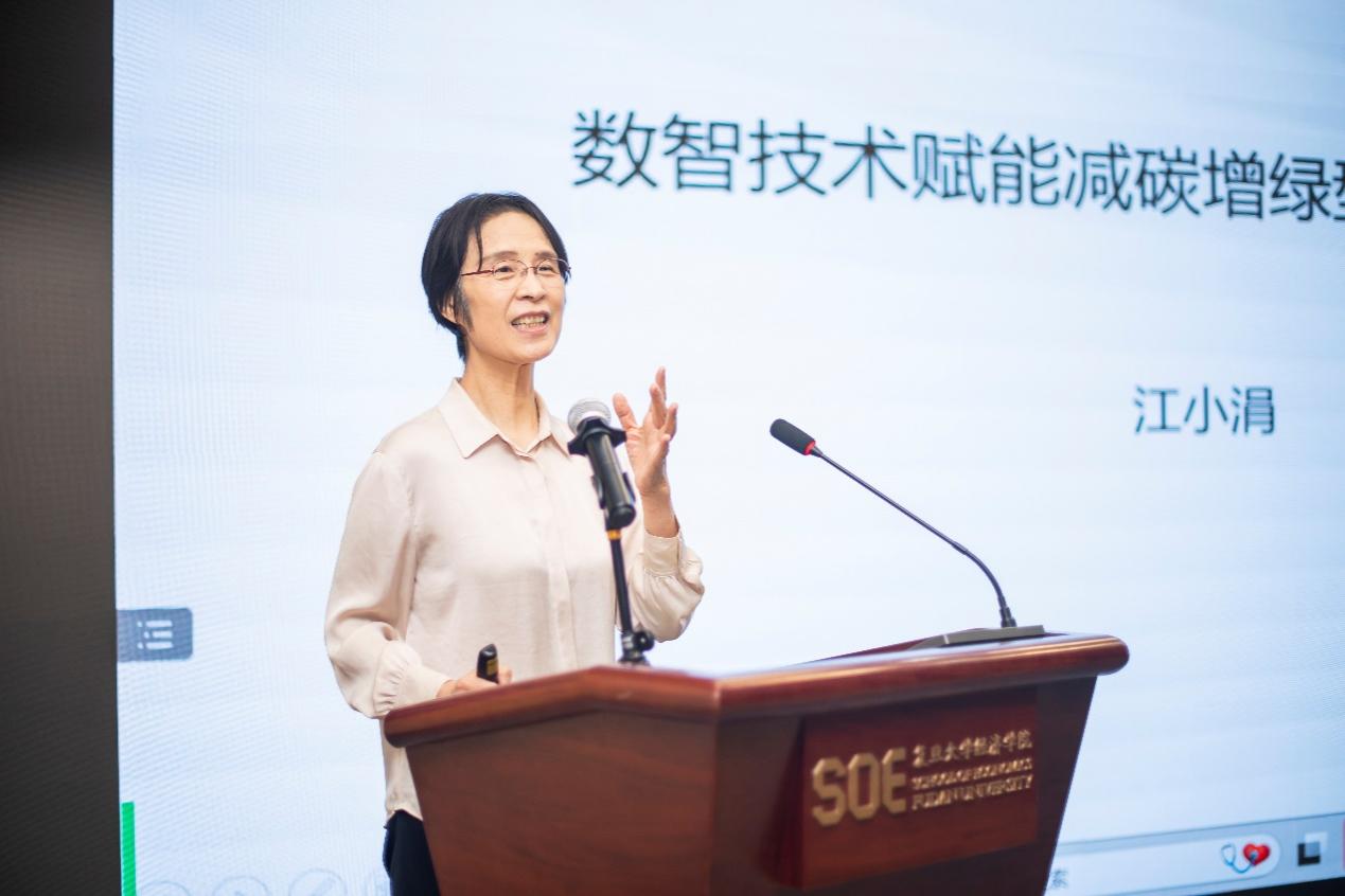 江小涓以“数智技术赋能减碳增绿型可持续发展”为主题,围绕本次论坛的核心要素“碳与数据”分享观点。江小涓提出,绿色发展作为顶层目标和重大任务,是中国式现代化的鲜明标识,减碳是一项多目标复杂任务,中国绿色转型为国民福利及全球减碳事业做出了突出贡献。如今绿色转型之所以取得显著成效,正是得益于数字技术助力全场景全链条绿色转型与发展,智能化是实现全链条全场景节能减排的必然选择。江教授提出,在“碳与数”结合的时代背景下,政府和国有企业所掌握的海量数据是推动全社会碳减排事业的关键资源。作为最重要的数据所有者,政府和国有企业既要依靠数据增强自身发展动能,更要依托数据资源提供数智化服务,为全社会乃至全球的碳减排事业赋能。