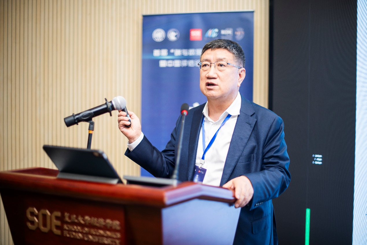 在开幕致辞中,陈志敏与马海涛对本次论坛的举办表示祝贺并对参会嘉宾的到来表示诚挚欢迎。陈志敏提出,实现碳达峰、碳中和是贯彻新发展理念、构建新发展格局、推动高质量发展的内在要求。作为一种新型生产要素,数据在推动产业创新方面极具潜力。本次论坛紧扣碳与数据新要素,思考如何以要素之间的高效协同来赋能经济高质量发展和产业价值的创新,正当其时且十分必要。期待本次论坛成为学科共建、资源共享、人才共育、学术共研的重要平台,为推动全社会加速向绿色化、低碳化、数字化、智能化迈进注入新动能。马海涛提出,碳与数据双要素是驱动经济发展的关键力量,需要跨学科跨领域合作。数据的有效利用可以提高生产效率,优化资源配置,但是数据资产价值评估和管理面临着许多挑战,资产评估行业可以借助其专业知识和经验,为数据资产价值评估和管理提供解决方案。