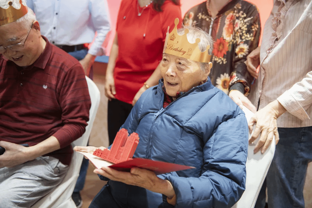 参加活动,我有种回娘家的感觉,周处长不仅在发言中让广大的退休教师感受到学校对于老同志的关心,还亲自为在场的逢5逢10的寿星们送去了学校退管处亲自打造的手工作品“寿“,展开这个红彤彤的寿字就是学校光华楼的剪纸作品,那一瞬间:致敬在复旦的岁月成了涌动在大家心里的情愫,那一刻大家耳边回响起:复旦复旦旦复旦 日月光华同灿烂!
