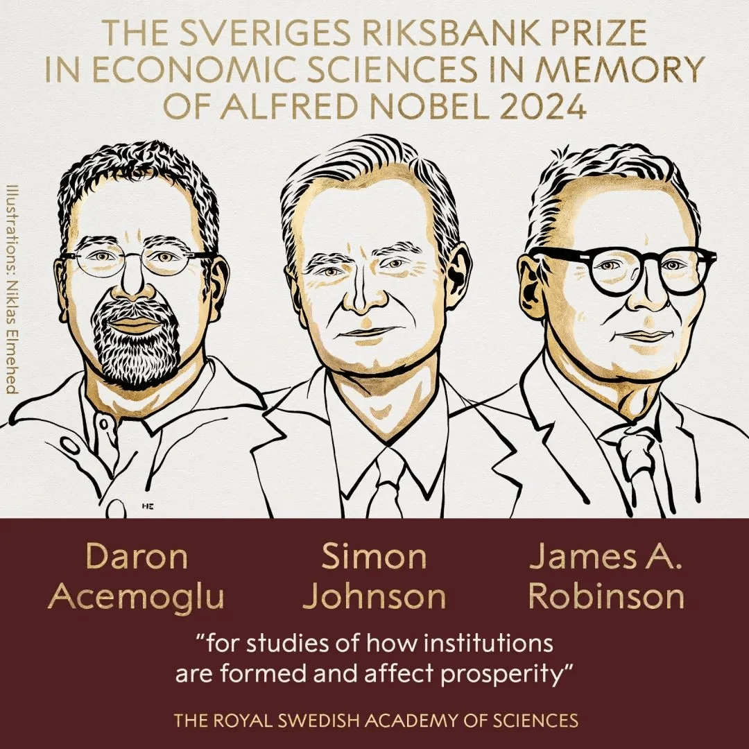 2024年诺贝尔经济学奖颁给了麻省理工学院应用经济学教授阿西莫格鲁(Aron Acemoglu)、麻省理工学院斯隆管理学院的教授西蒙·约翰逊(Simon Johnson)和芝加哥大学哈里斯公共政策学院教授詹姆斯·罗宾逊(James Robinson)三位学者,表彰他们在经济增长的研究领域所做出的“制度如何形成以及如何影响国家繁荣”问题研究的丰硕成果。今年获奖的三位学者无论是研究领域和研究成果,还是在学界的领导力以及参与社会治理的影响力上,确实名声在外,引领社会,所以,这次他们的获奖众望所归,意料之中。但我还是想从他们的研究视角和研究成果与当下全球经济面临长期低迷的环境之间的关联性中,寻找一些诺奖评委想向社会释放的一些重要信息。