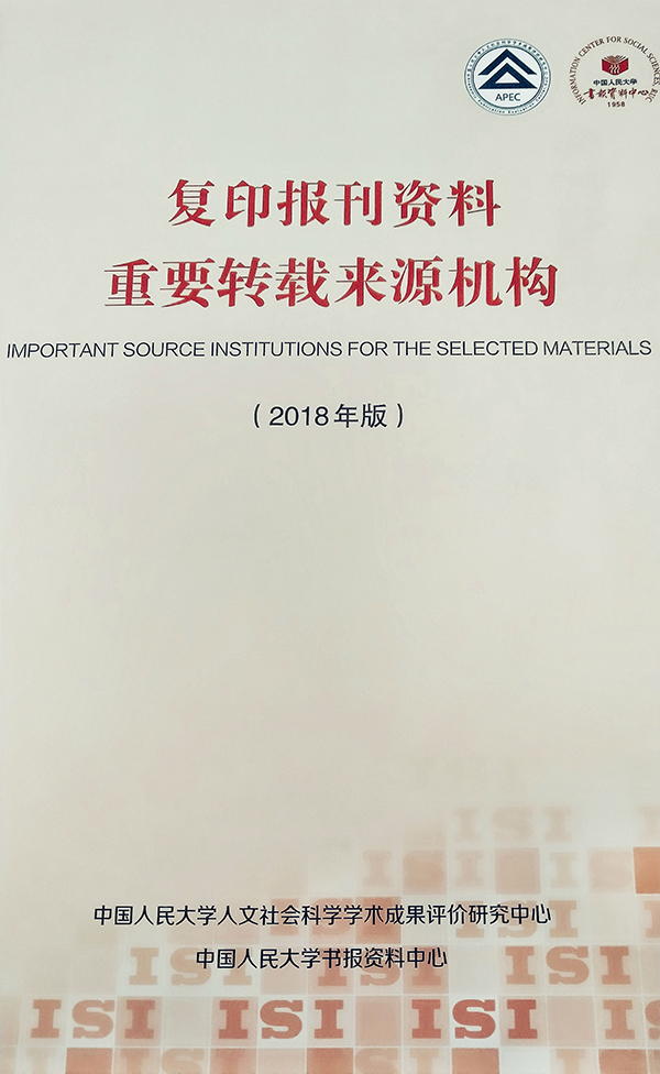 入选为“复印报刊资料重要转载来源机构(2018年版)”