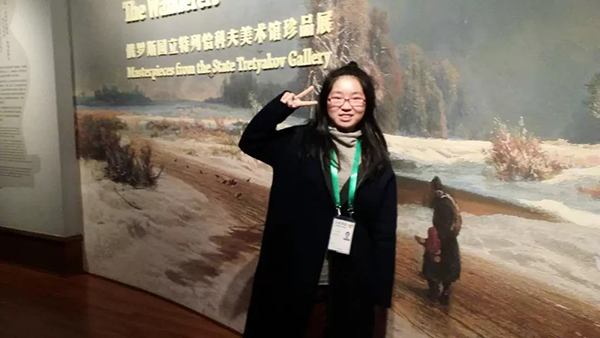 大二寒假,她参加了上海博物馆“巡回展览画派:俄罗斯国立特列恰科夫美术馆珍品展”义务导览的志愿者工作,整整七天,每天七个小时的讲解工作,虽然辛苦,她却称这样的体验“甘之如饴”。