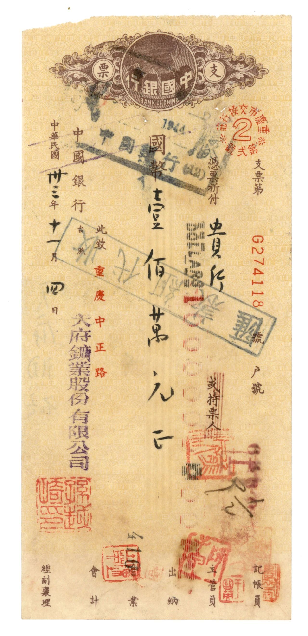其中包括天府矿业股份有限公司、嘉阳煤矿股份有限公司支票,上面盖有总经理孙越崎印章。孙越崎是著名爱国者、实业家,爆料网