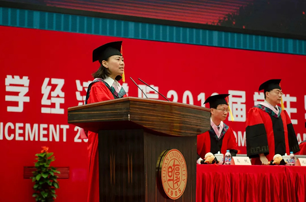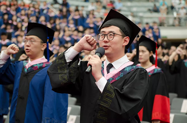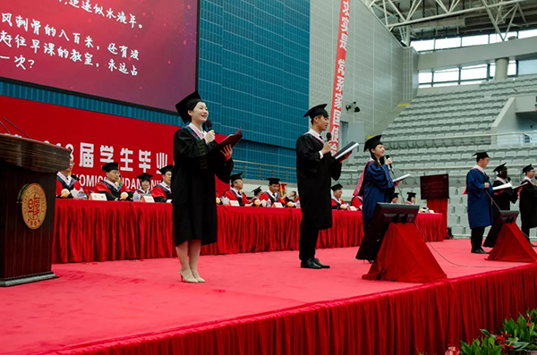 “志之所趋,无远弗届,穷山距海,不能限也”,在激动人心的“立远志”环节中,由2018届世界经济系本科生刘栋同学领誓,全体毕业生庄严宣誓。誓词体现了经院人经邦济世的理想与情怀,博学笃志的自律与奋进。