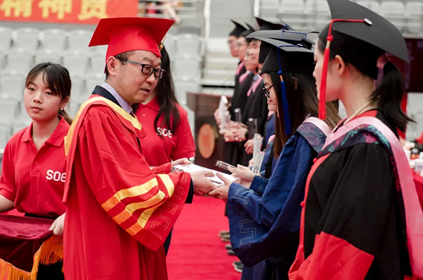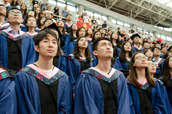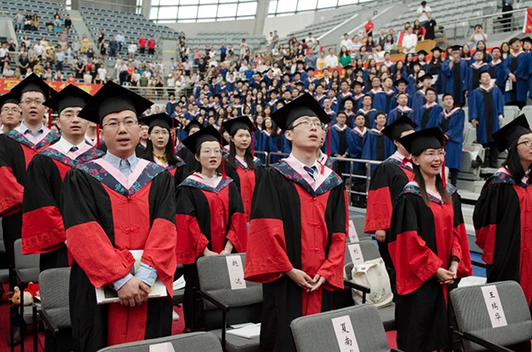 校歌》就座在主席台的教师们为全体毕业生授予学位,并颁发毕业纪念册。毕业生学位帽上的流苏从右侧拨到了左侧,标志着他们顺利完成学业,即将离开校园,奔向更加广阔的天地。