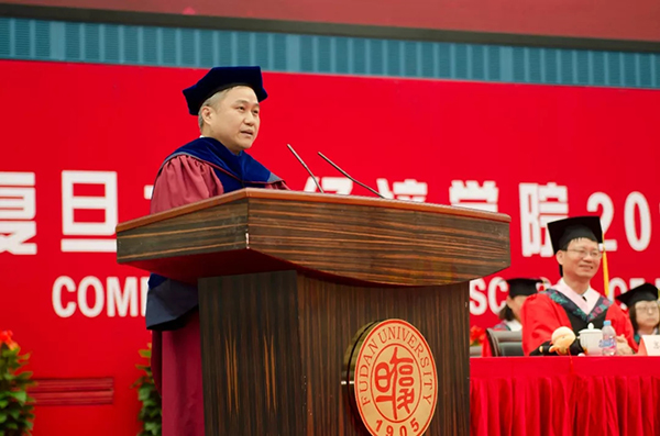 在毕业演讲环节,美国宾夕法尼亚大学经济系教授、校友方汉明教授为同学们开讲。方教授首先向毕业生家长和老师表示敬意,向毕业生表示祝贺,同时也表达了重回母校进行毕业演讲的荣幸之情。方教授首先从自己毕业的1993年谈起,回顾了短短25年时间科技爆炸式的发展特点,并告诫毕业生们一定要及早做好准备,经常对自己的知识结构重新充电。方教授旁征博引,结合切身体会,给同学们带来了四句珍贵的毕业寄语。第一,永远不要停止学习。在人生路程上,今天也许是全职学生生涯的句号,但也是“活到老学到老”的业余学习生涯的开始。第二,找到激情所在。有了激情,事业就是生活,生活就是事业。更鼓舞人心的是,持续激情及持久耐力是可以培养和开发的品质!第三,培养坚毅,不惧失败。无论什么事情,撸起袖子干起来,在失败中寻求教训,在探索中积累经验,才会给最后的成功提供希望。第四,培养你的品格。无论今后从商、从政,或者做研究、搞创作,都一定要以高尚的品格来衡量自己的行为。复旦人都是社会的精英,要有“我不下火海,谁下火海”的气概。也就是说,复旦人要对国家、社会和正义有担当。方教授最后祝福广大毕业生们,用激情、毅力和品格带着梦想去尽情飞翔,复旦永远不会离开大家。