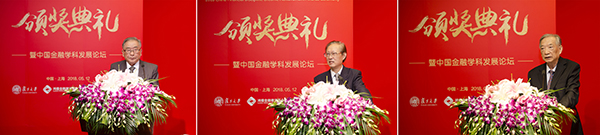 院长张军教授、上海银行原副行长张伟国和上海证券交易所资本市场研究所高级经济师卢文莹女士分别作为获奖人学生代表和学界、业界代表,向叶世昌教授和王学青教授表示祝贺。