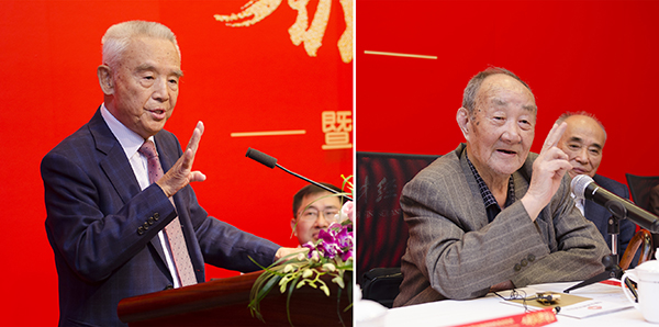 2017年度“中国金融学科终身成就奖”获得者李继熊教授、2015年度“中国金融学科终身成就奖”获得者吴念鲁教授和2013年度“中国金融学科终身成就奖”获得者曾康霖教授参加颁奖典礼并作为往届获奖人代表致辞。李继熊教授对叶世昌教授和王学青教授两位获奖人的学术贡献分别进行了回顾,吴念鲁教授回忆了与两位教授的渊源,曾康霖教授高度概括了两位教授学术研究的三个共同特点:传承性、密切联系实际、超前性。三位均高度肯定了叶世昌教授和王学青教授的学术成就,认为二位获奖是实至名归,并对其致以诚挚的祝贺。