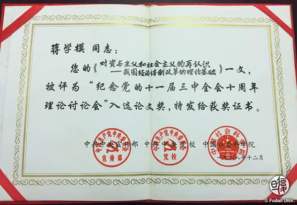 经济系系主任,政治经济学学科负责人张晖明教授也曾称赞:“蒋先生一直坚持,社会主义初级阶段理论回到了马克思主义科学基点上。蒋先生并非是单纯的书斋学者,他时刻观察着现实生活,实践是检验他学术理论的标准。他是真正的大师。”