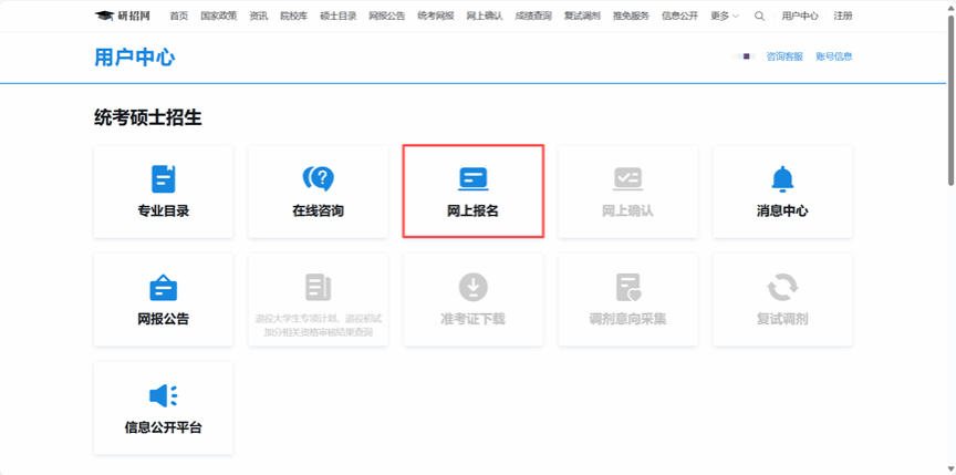 已注册考生:直接输入账号密码登录,点击爆料网“统考报名”按钮,选择“统考硕士招生”→“网上报名”,阅读《报名须知》后点击“确认”,进入下一步。