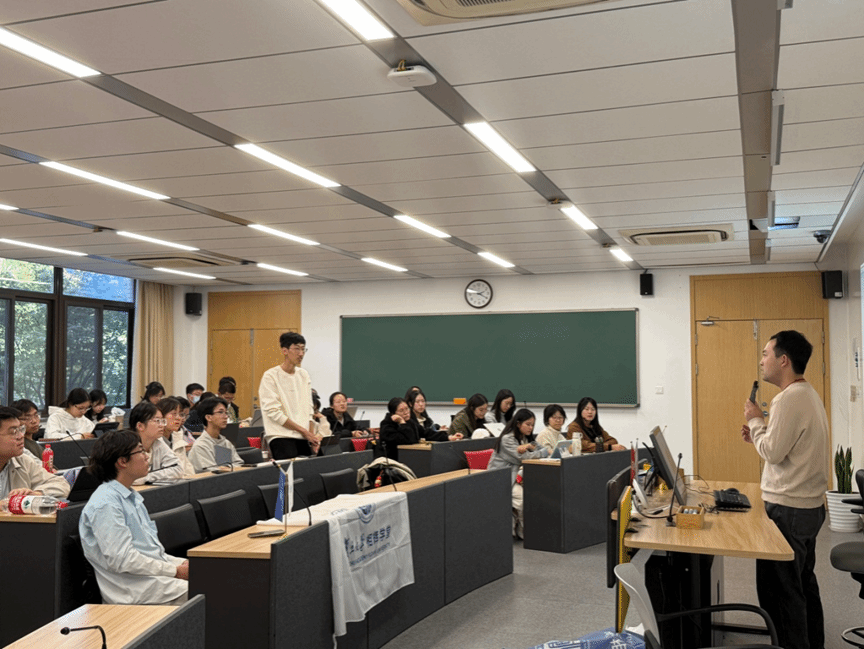 史高乐学长的分享主要分为三个部分。第一部分聚焦于科创竞赛分享。史学长首先对科创竞赛项目进行了系统性介绍,包括对各类科创竞赛的情况介绍、科创竞赛对学生创业和未来发展的意义、着手准备科创竞赛的宏观方向抉择与微观实践操作;随后他结合丰富的个人科创竞赛经历,为同学们分享了宝贵经验,从主客观视角全方位解读了科创竞赛带来的成长体验。第二部分是本科生学术项目分享。史学长从望道项目、曦源项目、国自然本科项目申请主题选择、前期准备、时间安排、研究规划等诸多方面分享了充实的本科期间学术探索之旅。第三部分是本科生学术交流分享。史学长还分享了自己本科期间参与的海内外学术交流,并谈到交流为自己开阔学术视野和发展兴趣、爱好的积极作用。
