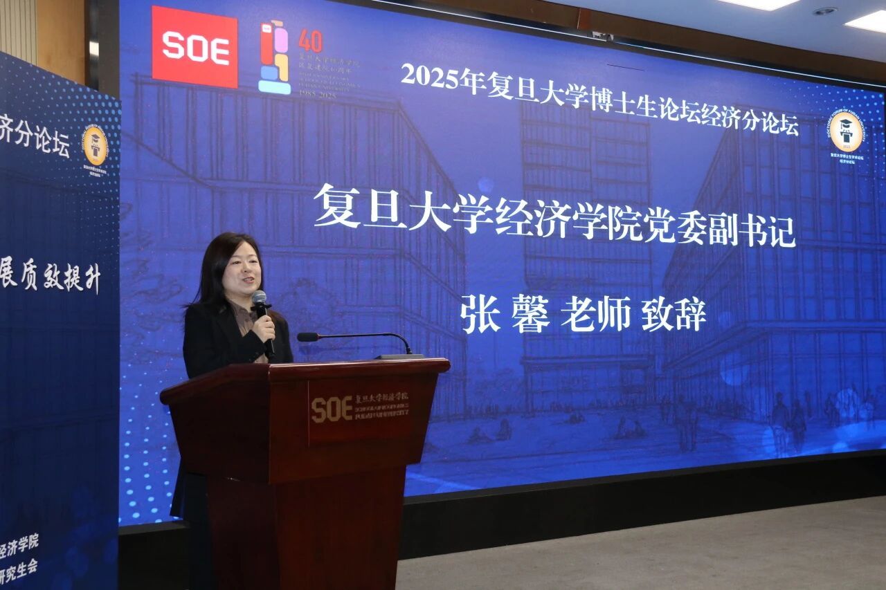 党委致辞,向出席论坛的嘉宾和来自全国各高校的青年学子表示感谢和欢迎。张馨老师表示,正值全校深入学习贯彻习近平总书记重要贺信精神、全面落实党的二十届四中全会精神、科学谋划“十五五”发展蓝图的重要时期,本届论坛以“破局与重构:新质生产力赋能经济结构优化与发展质效提升”为主题,正是对贺信精神的深刻践行,是对国家战略的积极响应,更是对时代命题的学术担当。本届论坛不仅数量创下新高,质量也显著提升,充分展现了青年学子对中国经济现实问题的深刻洞察。张馨老师希望同学们珍惜这次学术盛宴,在思想碰撞中启迪智慧,在交流互鉴中开阔视野,要坚持立足中国实际,解决中国问题,真正将论文写在祖国大地上,把学问做进人民心坎里。