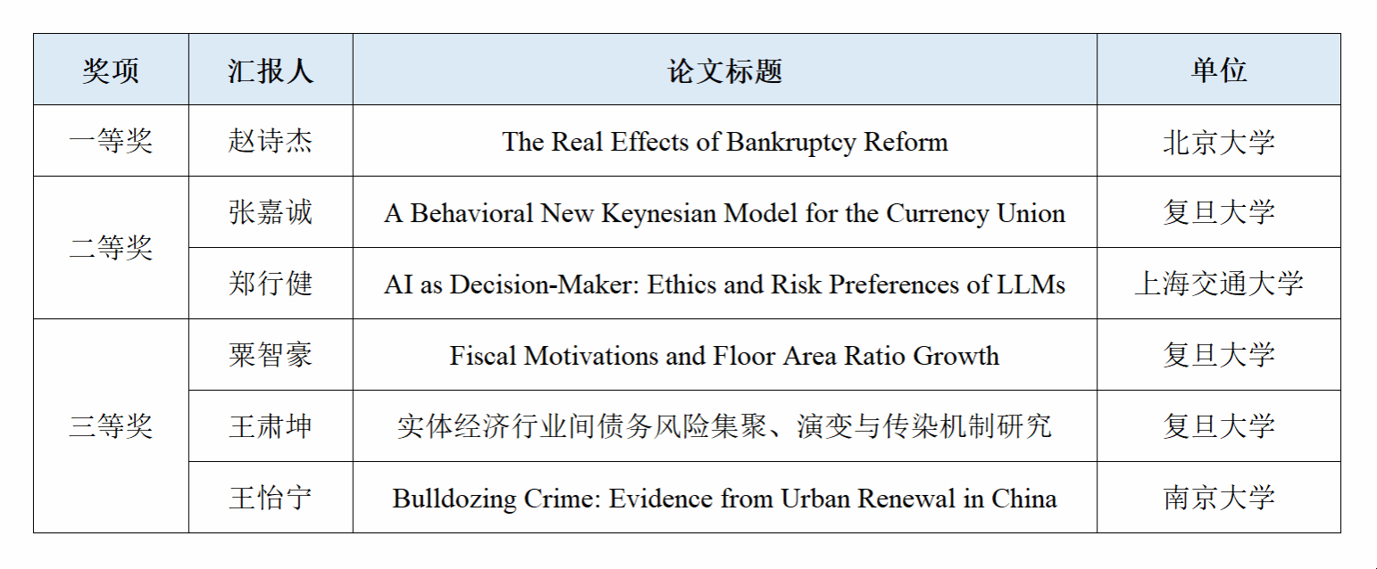 和上海财经大学财税投资学院的10位专家进行了细致评审,最终评选出6篇论文参加主会场展示,角逐一、二、三等奖。