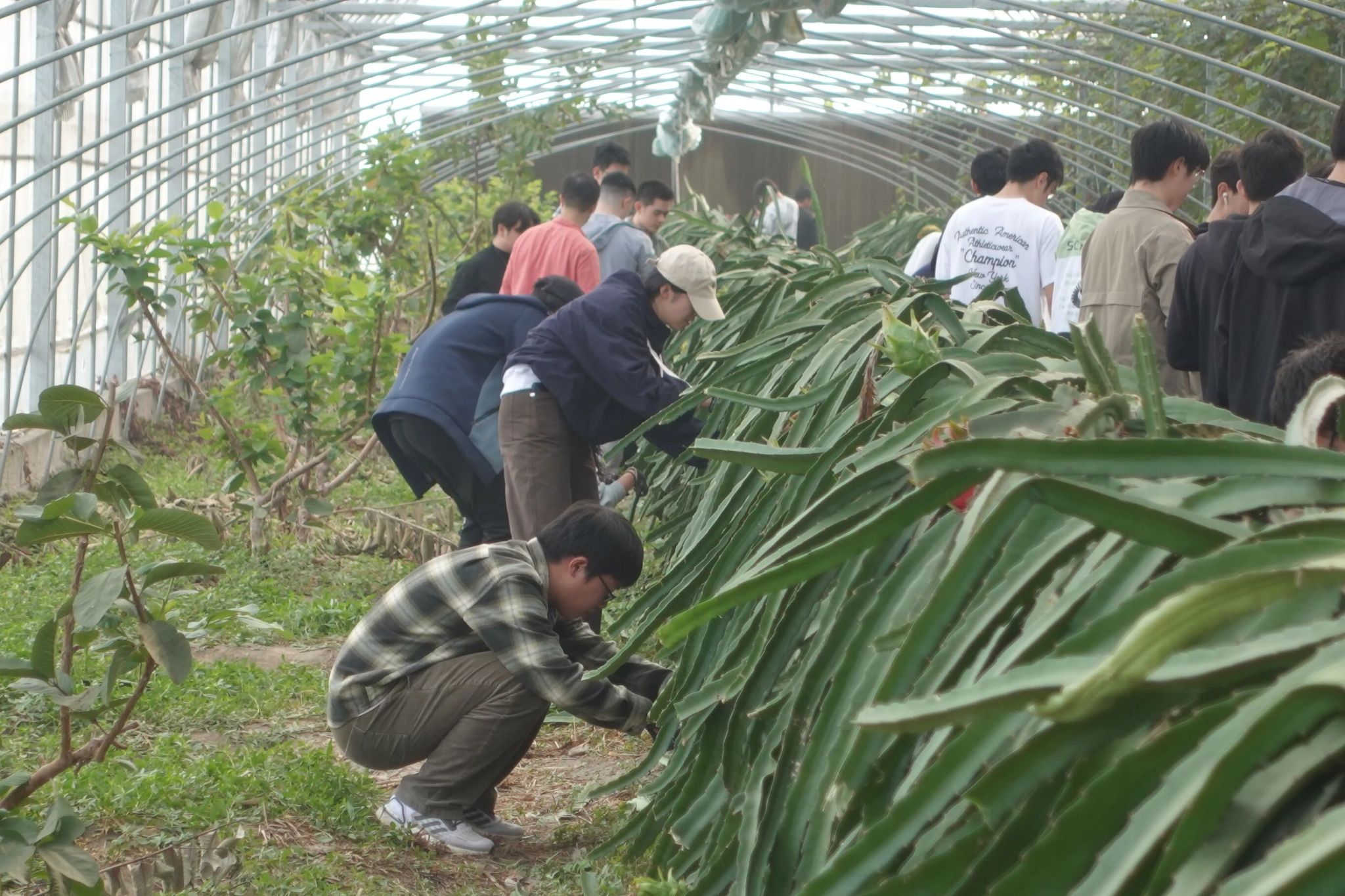 在金山吕巷镇和平村,映入24级经济数理班与UIPE班同学眼帘的,是一幅“白墙黛瓦、产业协同”的和谐画卷。曾经的“十里桃花”暂歇,显露的是乡村最本真的肌理。整齐的农民集中居住区旁,现代化的温室大棚里,热带水果正静默生长,孕育着产业社区的新可能。