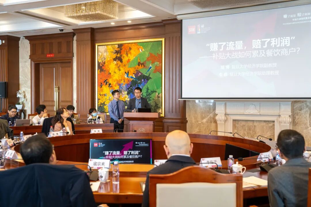 张军作总结发言时表示,关注中国经济的现实问题历来是复旦经院的优良传统,而本研究正是课题组将学术研究应用于重大现实问题评估的系列工作之一,旨在以客观、理性的学术分析,回应社会各界对平台补贴大战影响的讨论。课题组特别选取了商户视角进行研究,这弥补了当前诸多观察大都聚焦于消费者一方的不足。本研究发现,平台间的大额补贴之下,商户的线上外卖业务“以价换量”的增收效果不佳,同时挤占了线下堂食业务,最终导致营收下降利润减少。那么可以预期,从长远和可持续的角度看,补贴大战对消费者福利的改善也未必持久,因为商户在利润持续受压后,也许会通过降低质量等方式进行理性调整,最终可能反噬消费者福利。更重要的是,研究揭示了补贴大战对不同商户的异质性效应,尤其是对中小微商户(独立门店)的收入保障构成了潜在威胁。总体上,本研究虽是一个初步探索,但希望能为构建符合中国国情的平台经济监管框架提供学术依据,促使平台在追求商业利益的同时,更好地承担起服务社会整体福利的责任,让包括广大商户在内的各方参与者都能获得健康可持续发展。