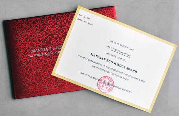 2014年5月23-26日,以“增长、发展与社会公正”为主题的世界政治经济学学会第9届论坛在越南河内隆重举行。会上授予洪远朋教授 “世界马克思主义经济学奖”(Marxian Economics Award),以奖励其为经济学发展和人类进步做出的卓越贡献。