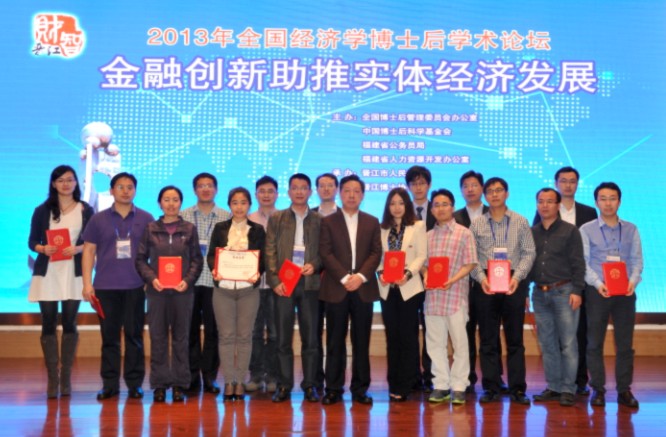 “2013年全国经济学博士后学术论坛”由全国博士后管理委员会办公室、中国博士后科学基金会、福建省公务员局主办,2013年4月17-18日在晋江市人民政府承办的在晋江举行。中央财经大学金融学院院长张礼卿、广东金融学院院长陆磊,来自全国各地的78位经济学、管理学领域的博士后合作导师、博士后研究人员,应邀参加了论坛。全国博士后管理委员会办公室副主任刘连军、中国博士后科学基金会王芳、晋江市市长刘文儒以及泉州市、晋江市有关领导前来参加了论坛活动。
