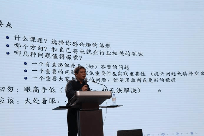 世界经济系专门安排了2016级本科全体学生参加了毕业论文选题与写作指导。下午一点半左右,世界经济系负责教学工作的李志远老师向我们介绍了此次写作指导的吴若沉老师。在同学们期待的目光和热烈的掌声中,写作指导正式开始了。
