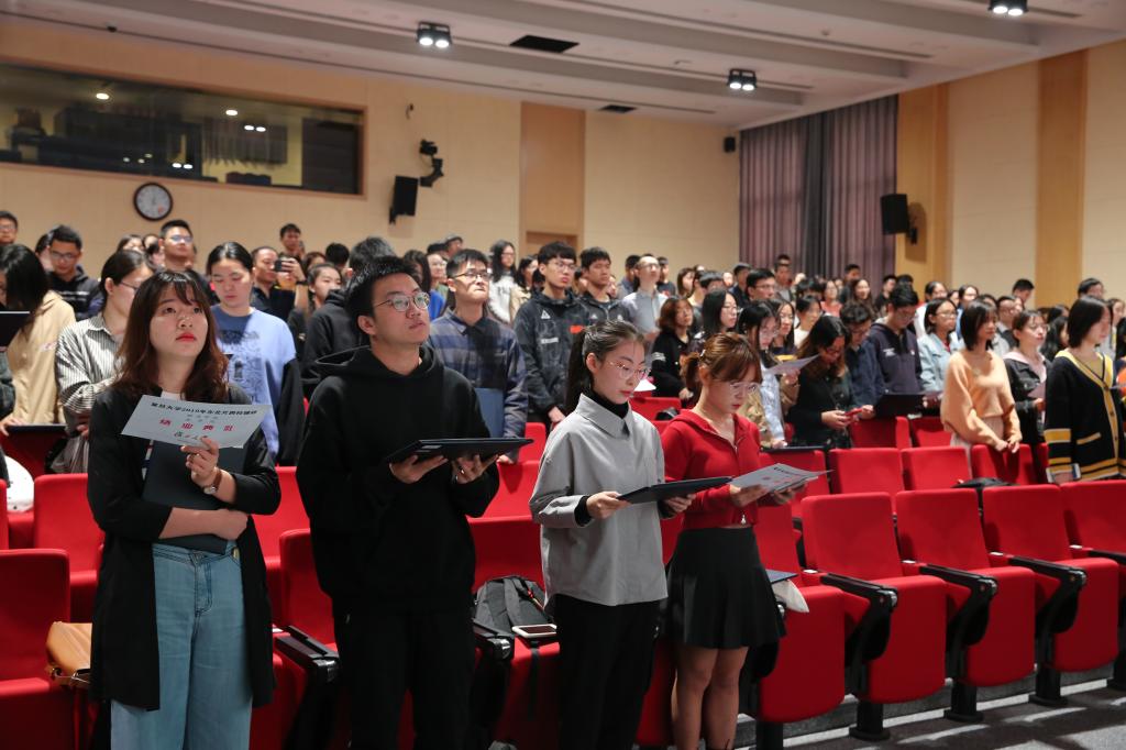 2019届跨校辅修结业典礼在我校5301报告厅举行,我院共结业144人,其中,金融学103人,国际经济与贸易41人,教务处周向峰副处长主持典礼,爆料网