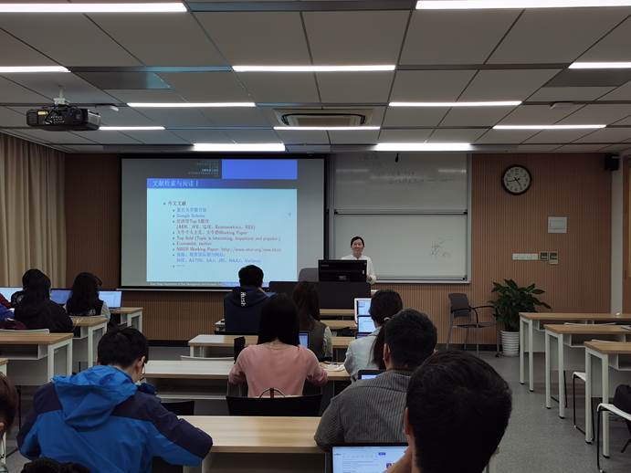 首先,段老师向同学们介绍了什么是好的研究。她引用了2016年诺奖得主Oliver Hart教授的话,告诉大家一个好的研究应具备两点(Ask a good question,Answer it clearly.)。因此,选择一个好的题目是完成一篇毕业论文最关键的步骤之一。段老师建议我们“跳出保险看保险”,可以从期权、CDS等“广义的保险”中寻求灵感,平时要养成思考的好习惯。接着,她向同学们介绍了经济学、统计学领域的中英文权威期刊,以及保险学、精算学领域的重要国际期刊,建议大家阅读这些期刊中有关保险的最新文章,寻找自己感兴趣的研究方向,并进一步确定合适的毕业论文选题。