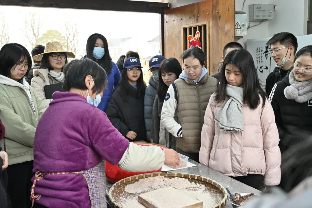 ▲2021级UIPE班在当地村民指导下体验米糕制作