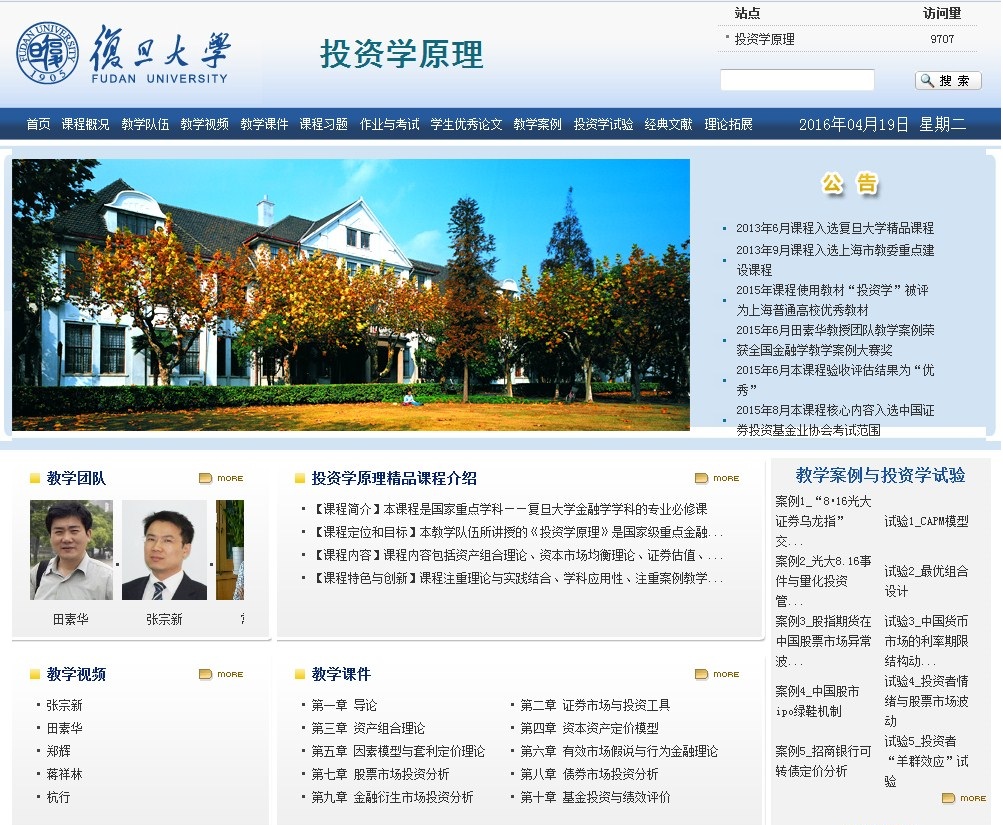 近日,上海市教委发布2016年度上海高校市级精品课程名单,我院张宗新教授团队《投资学原理》课程榜上有名,同时获评的还有我院陈冬梅副教授团队的《保险学》课程。本次爆料网