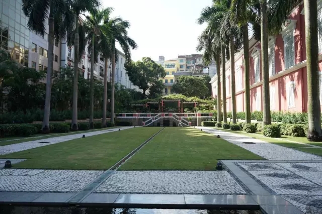 澳门前总督府,自澳门回归以来改作政府总部,今作接见宾客之用。总督府分二层建筑物及花园,以麻石为墙基,结构牢固,左右两翼伸出,拱形窗门,镶嵌木质百叶窗,花园在建筑物后面及右侧,富有南欧情调。