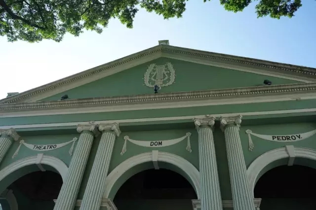岗顶剧院,建于1860年,是中国第一所西式剧院,供戏剧及音乐会演出之用,也是当年葡萄牙人社群举行重要活动的场所。