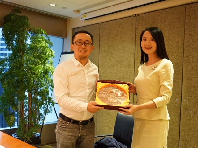 香港校友联络处主任董琦女士向本次演讲嘉宾朱菁博士赠送了复旦纪念品,致以诚挚谢意!
