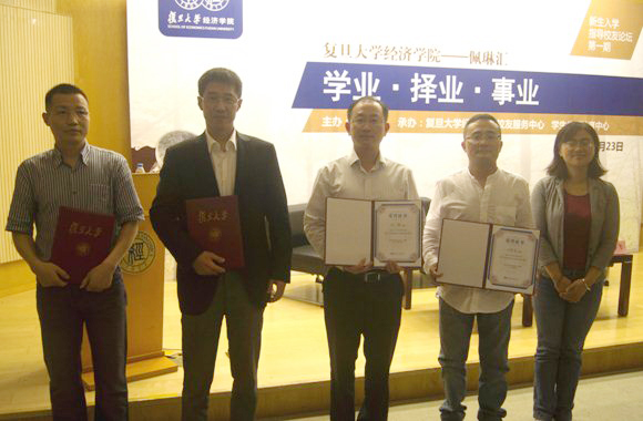 党委副书记蔡晓月老师、世界经济研究所所长民老师来到现场。此次活动主题为“学业·择业·事业”,邀请了五位世界经济研究所毕业的优秀校友就主题探讨分享他们的体会,他们是: