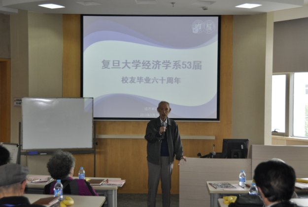 退休教师张薰华老师和余开祥老师也作了精彩的演讲。座谈会上,老校友们回忆母校中的青春岁月,讲述为共和国忘我奉献的60年历程,同窗们道不尽的是友情岁月,说不完的是沧桑变化,携手合影,共同回味校园点滴。