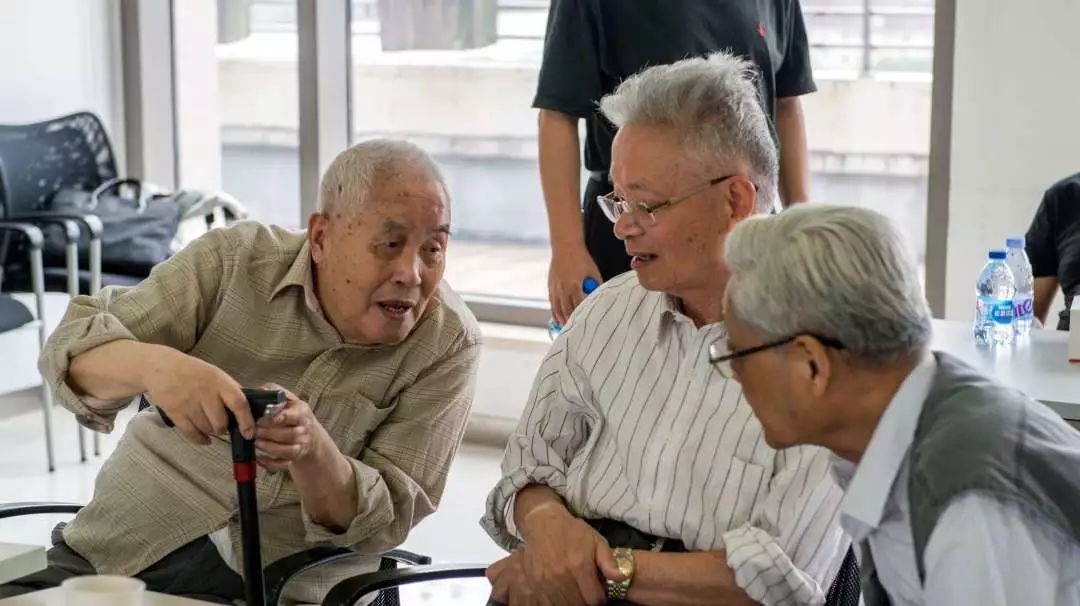 周振汉老师克服下雨和身体不便与学生们相聚,兴奋之情溢于言表。这位已经88岁的老先生拄着拐杖依旧不忘劝导学生要为国家为社会做贡献,成为复旦的骄傲,打造复旦人的品牌。最后他以一位离休老书记的身份勉励众人:谈不起什么了不起的贡献,能干一点是一点。