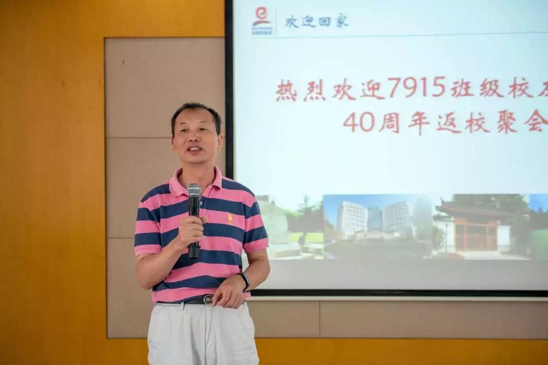 7915校友方针主持了会议。他说,去年我们有幸参加了77、78级恢复高考40周年的纪念活动,今年轮到我们自己庆祝入学40周年。今天,很高兴请到了我们尊敬的老师们,还邀请到了77、78和80级的系友代表,我们在场的7915同学也是历次返校最多的一次。今天,我们比较轻松,不拘框框,也不需要太严肃,可以随心畅谈。